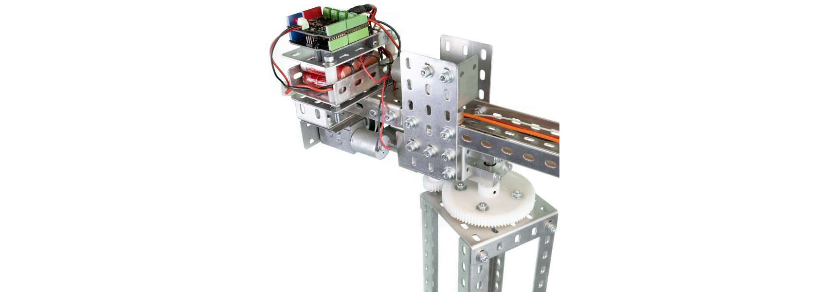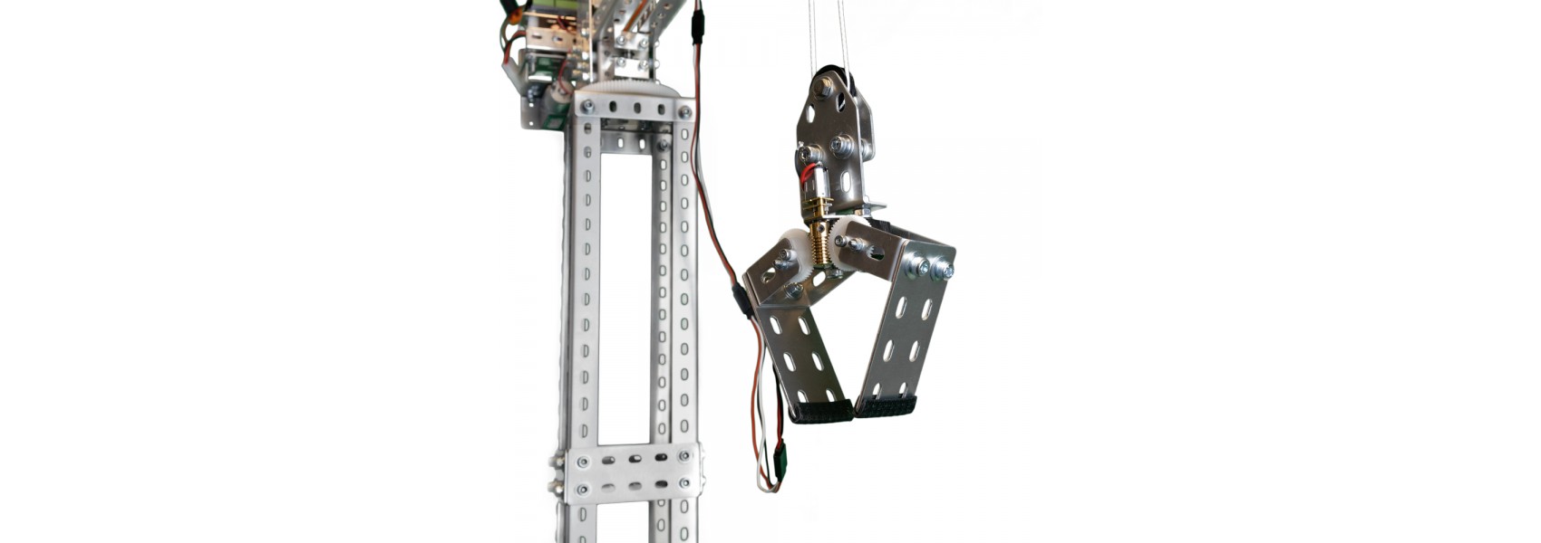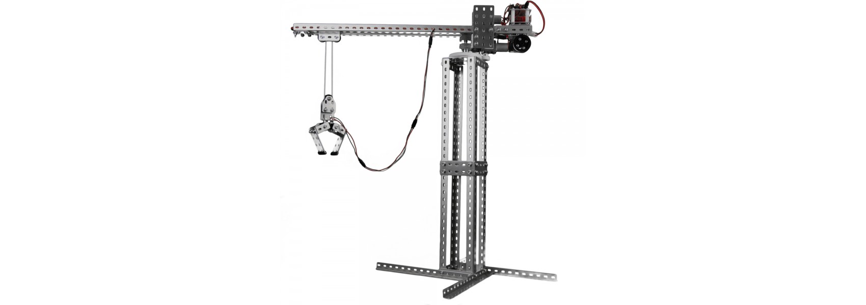 The structure is built using our Meckit construction system, and is powered using our Worm Gear Motors and a Micro Spur Gearmotor on the grab.